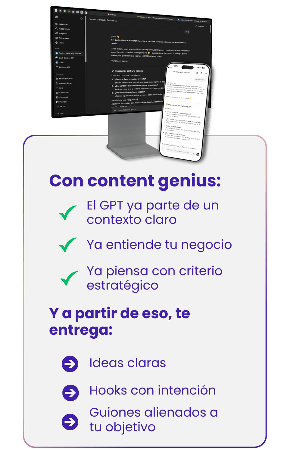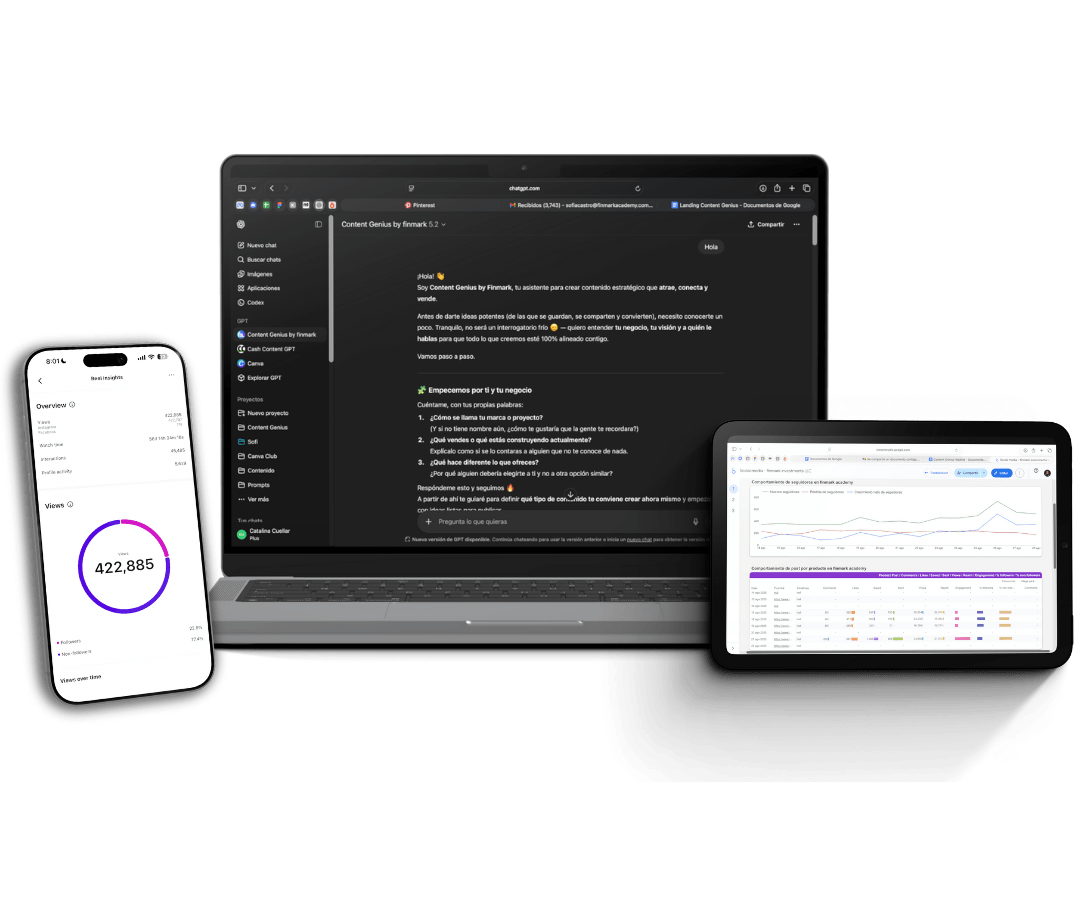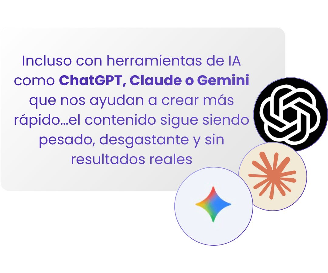El asistente de contenido que entiende tu negocio y te dice exactamente qué publicar, cómo hacerlo y para qué, sin ideas genéricas y sin perder horas creando contenido