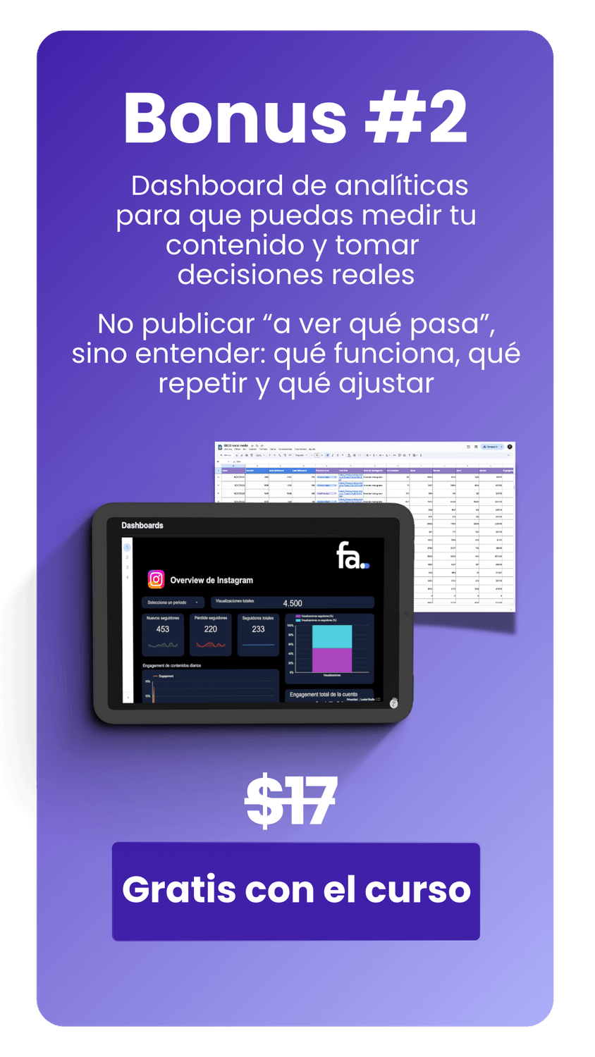 Después de analizar cuentas que realmente crecen, estudiar contenidos que generan comunidad y ventas, y usar la misma estrategia que me permitió construir comunidades de +500K y +100k y facturar +$1M USD en los últimos 3 años